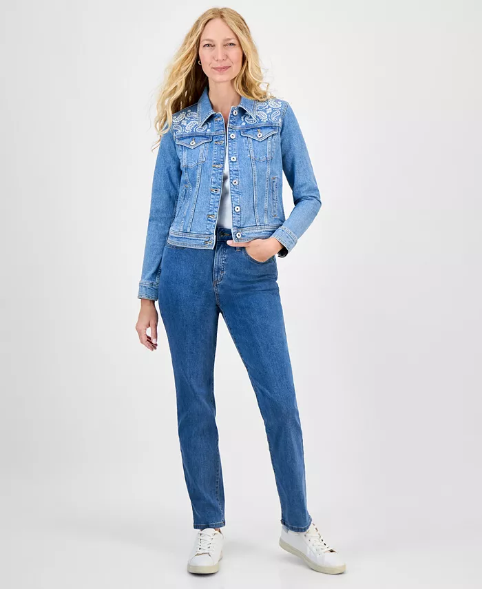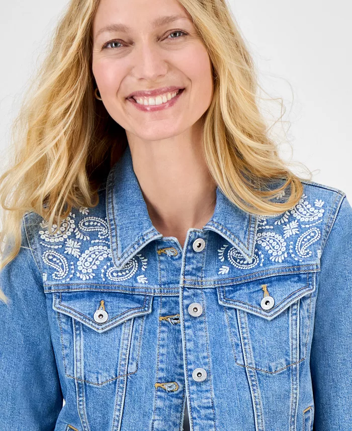 Women’s Embroidered Denim Jacket, Exclusively at Macy’s